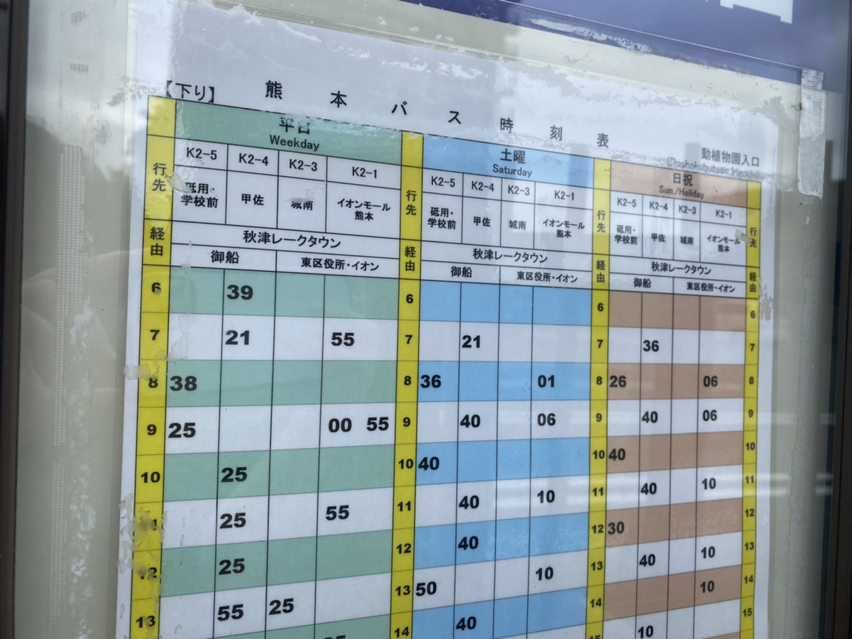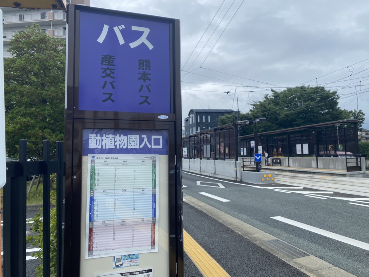 ※正確には市電沿いにある「動植物園入口(熊本バス)」のバス停が正解なのですが、山田は正門側にある「動植物園前(産交バス)」にいました。
