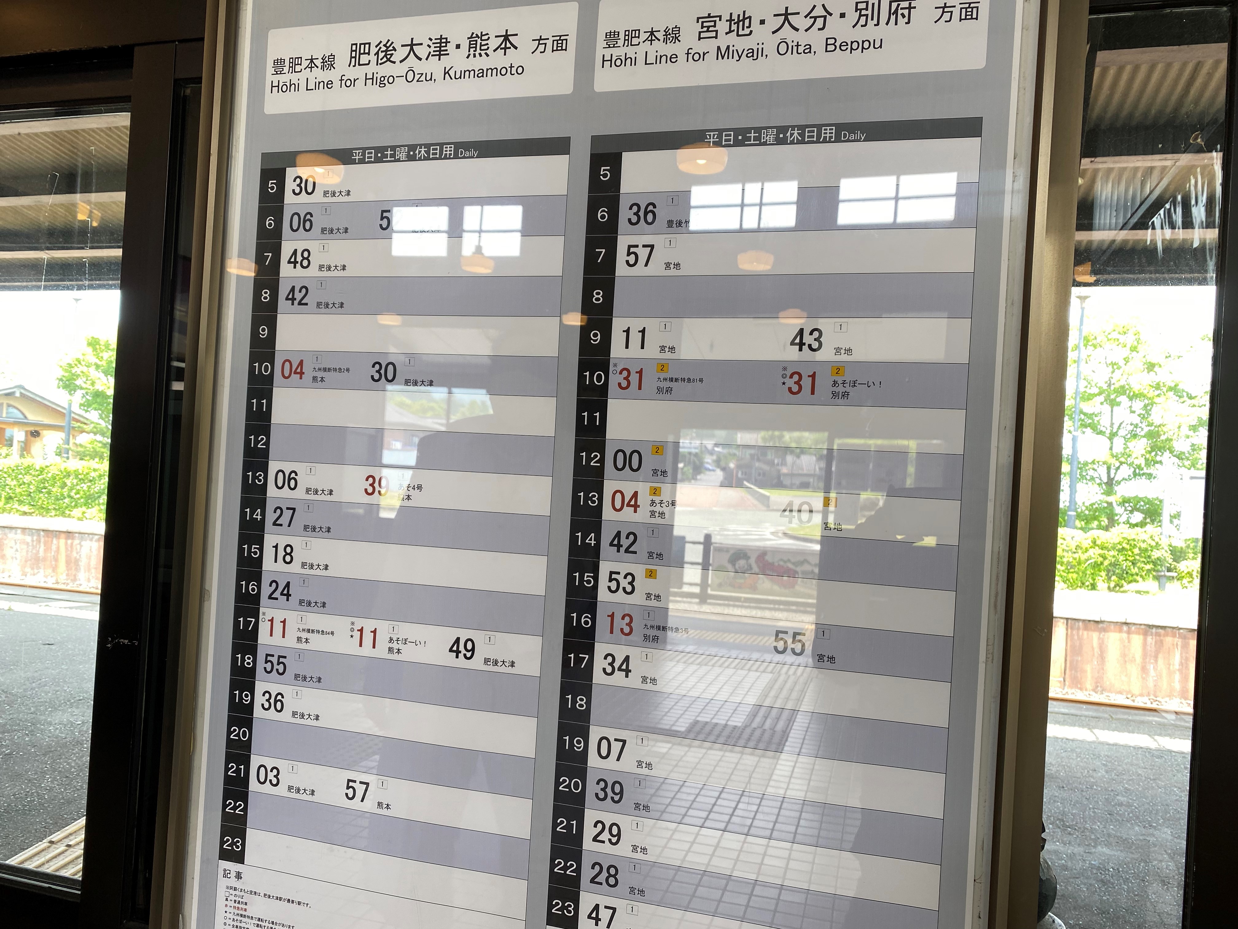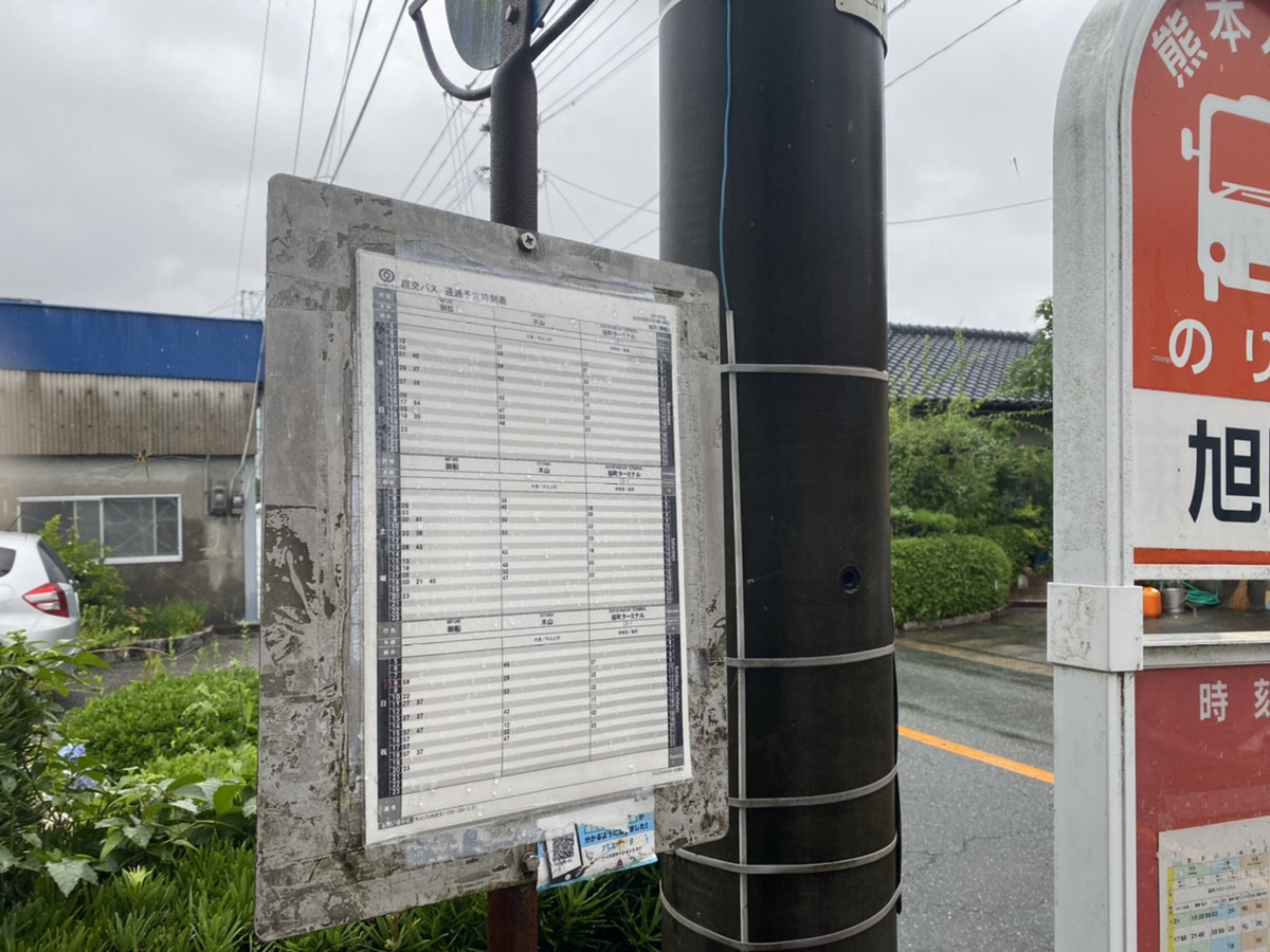 もう分かりますよね。ないんです。丁度いい時間のバス。来年、南阿蘇鉄道が復活して肥後大津駅まで乗り入れるので、そうなるとかなり楽になりそうですけど、現状だとちょっときついです。