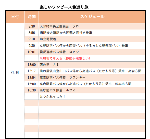 これで現時点の麦わらの一味が熊本県内に全員集合した訳です。