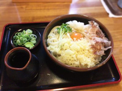 大根おろし 貝割れ大根 鰹節 天かす 卵といったシンプルなうどんです。