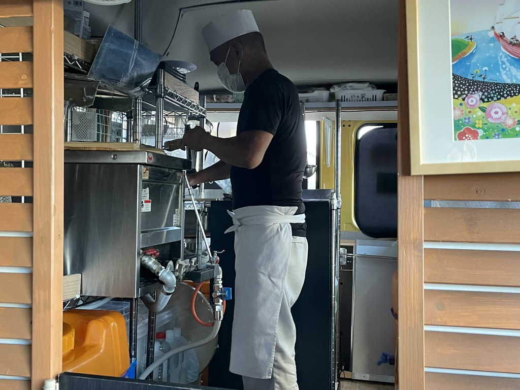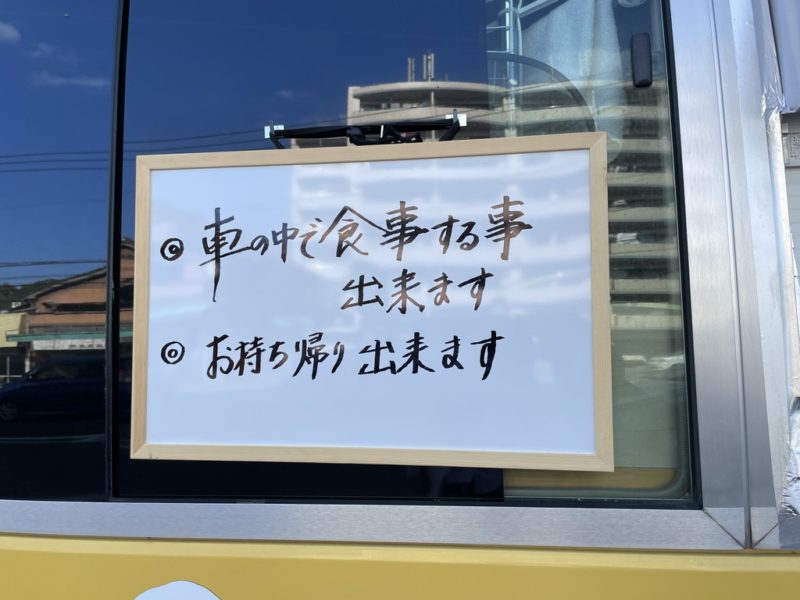 持ち帰りもできます。テイクアウト専門のキッチンカーと間違えられるそうです。