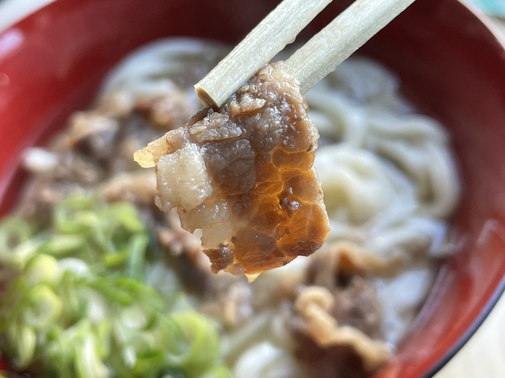 うどんのお肉って、タレにしっかり漬け込んだっていうイメージですが、ここのはスープが濃くなってスープ本来の味が損なわれないように、考えてありますね。ちゃんとタレの味も肉から染み出てきます。