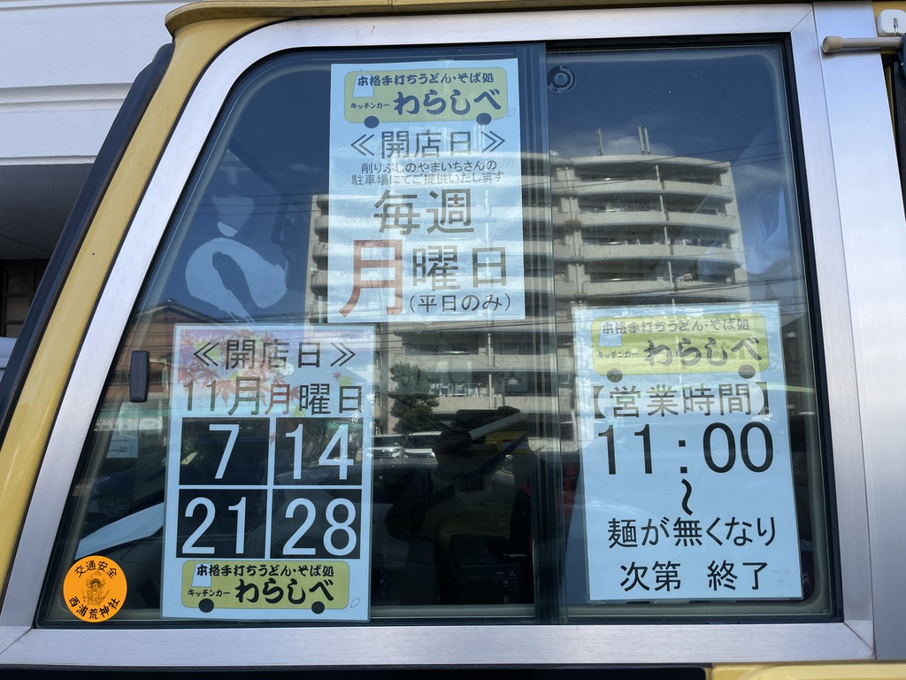 車体には「わらしべ」の文字が…あれ、子飼商店街に10年ほど前「わらしべ」ってうどん屋さんがあったよね…