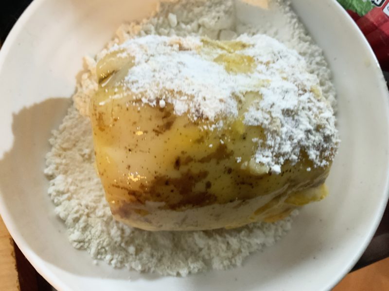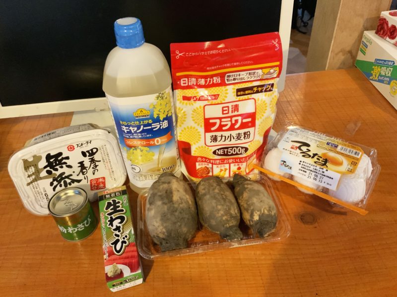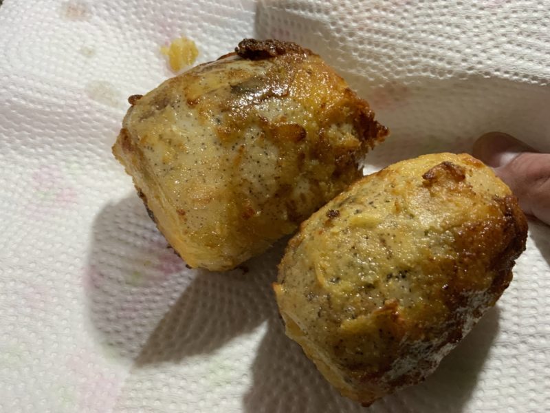 そして、揚がったものがこちら。油が少ないのがだめなのか、それとも衣に粉わさびが多すぎたのかだいぶ剥げています。