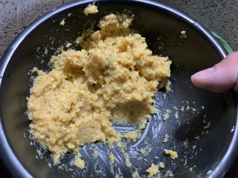 これを小麦粉と半々くらいで混ぜます。うーん、色の違い分からない。