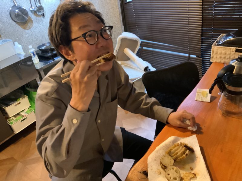 続いて編集部の羽田。からし蓮根は辛くて食べれないそうですが…