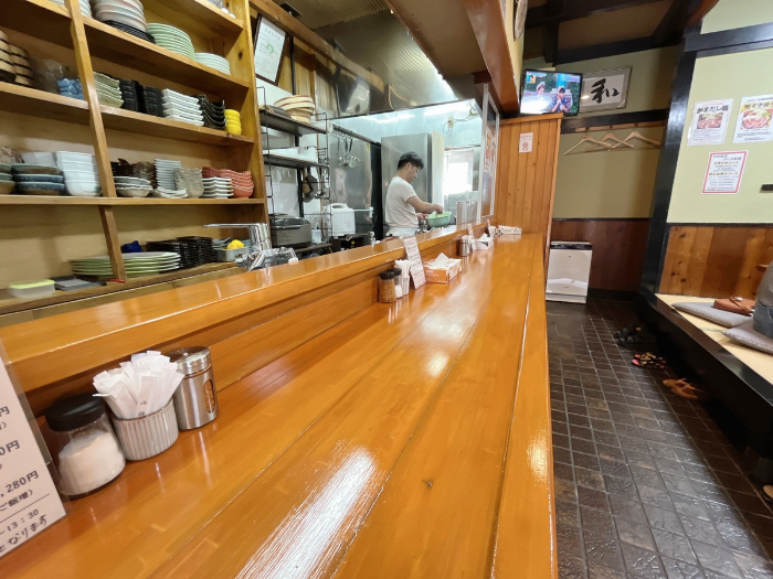 その反対側は広いカウンター。おひとり様でも気軽に入れる雰囲気です。