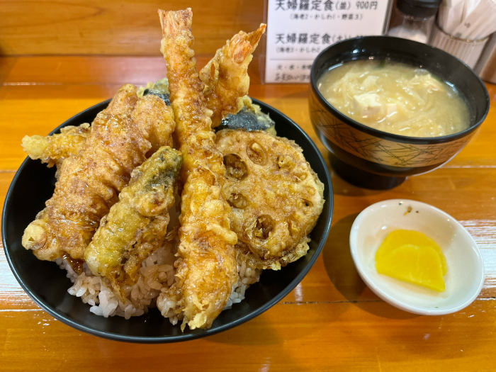 こちらのお店では、お昼限定で天丼と天ぷら定食が楽しめるとのことでやってきました。
