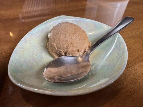 以前記事にもなった「ジェラテリア吉田」のものだそう。しゃりしゃりの中にぎゅっと濃厚な味が詰まったこだわりの一品です。お食事の後に是非あちらにもどうぞとの事でした。