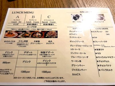 ランチはA・B・Cの3段階に分かれていました。