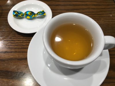 最後は食後のドリンク。ハーブティーにチョコレートのお菓子までついてきて、さりげないサービスにテンションも上がりました。