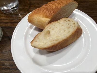 こちらのバゲットは2名分。テーブルにはオリーブオイルも置いてありました。