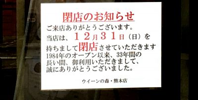 12月31日(日)で閉店。