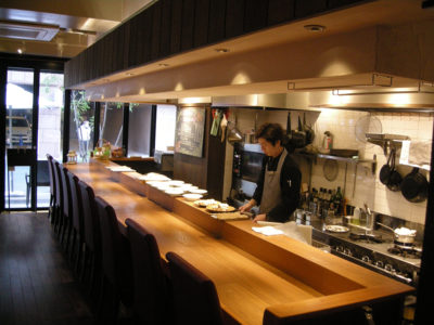 そして左側がビストロカウンター。森山シェフが洋食を担当しています。