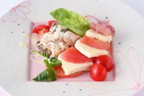 そして、サーモンのテリーヌナス包みとカプレーゼや、生鱧の天ぷらなどは、白ワインで楽しみたい…!