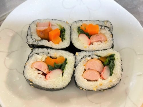お米は熊本県産で、お米屋さんと相談して、巻きずしに合うものを使われているそうです。ごま油の風味もよく、ぺろりと食べられてしまうので、チキンと合わせての購入もおすすめです。