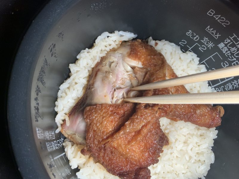 山都町の誇る名物「矢部のケンチキ」で、炊き込みご飯を作るとめっちゃ美味しい!!という結論に至りました。