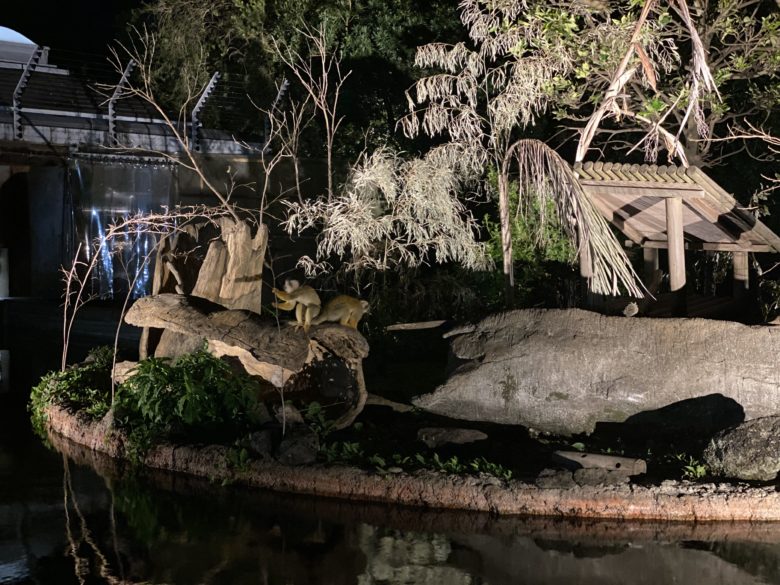 入口すぐのおさるさんたちも元気にキャーキャー言ってましたが、おさるさんたちは比較的昼間もアクティブに動いているんですよ。今回の目的は、夜に活発になるであろう動物たちが見たい…!この1点です。