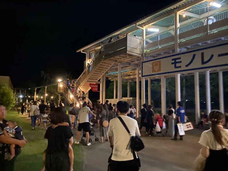 モノレール乗りながら花火て最高やん!!と向かったのですが、考えることは皆同じ。大混雑だったので諦めました。
