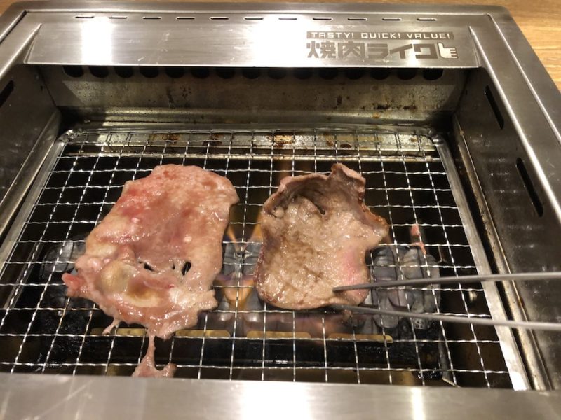 一枚ずつ焼くも良し、一度にすべて焼いてしまうも良し。だって、一人焼肉だもん。周りを気にすることはありません。ちなみに今回注文したプレートでは、牛タンから焼き始めることがおすすめだそうです。