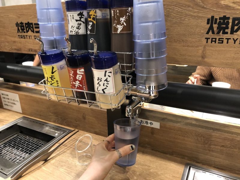 お水はセルフ。飲み干すたびに店員さんを呼ぶ必要はないので、お肉に集中できる環境は万全に整えてあることが分かります。