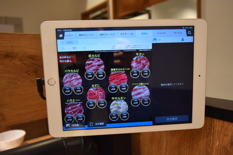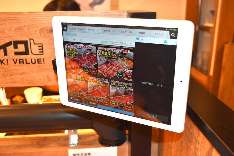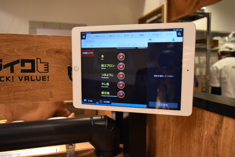 目線の先には、タブレットが。ここで、食べたいものをチョイスして右下の注文確定を押せば、注文完了。なんて簡単なんでしょう。