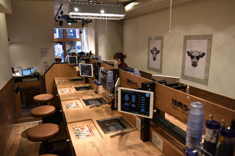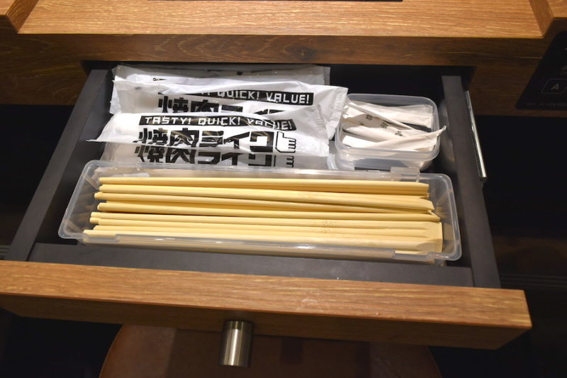 そして、よく見るとトレイがテーブルの凹んだ部分にピタリと収まっています。店長さんによると「お肉に没頭でき、1人の空間が完成するようにしています」とのこと。ここまで徹底されているとは、焼肉ライク恐るべし。