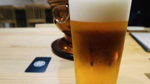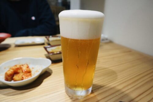 飲み物は夕方前から水分量をセーブして挑む、生ビール。