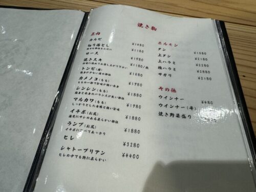ずらりと並んだお肉の種類。どれをオーダーしてよいのか迷います。
