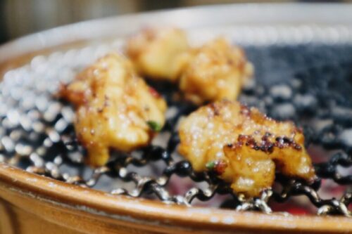 焼いてきゅっと丸くなったホルモンたち。適度な弾力とそれぞれの噛み応えにビールがすすみ、