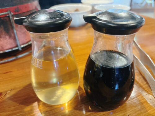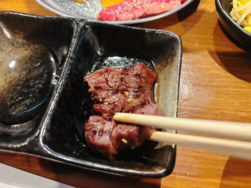 焼肉のたれとレモン汁のお好きな方でいただきます。