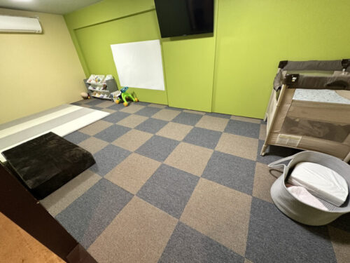 広いキッズルームにはベビーベッド、テレビも付いてます。