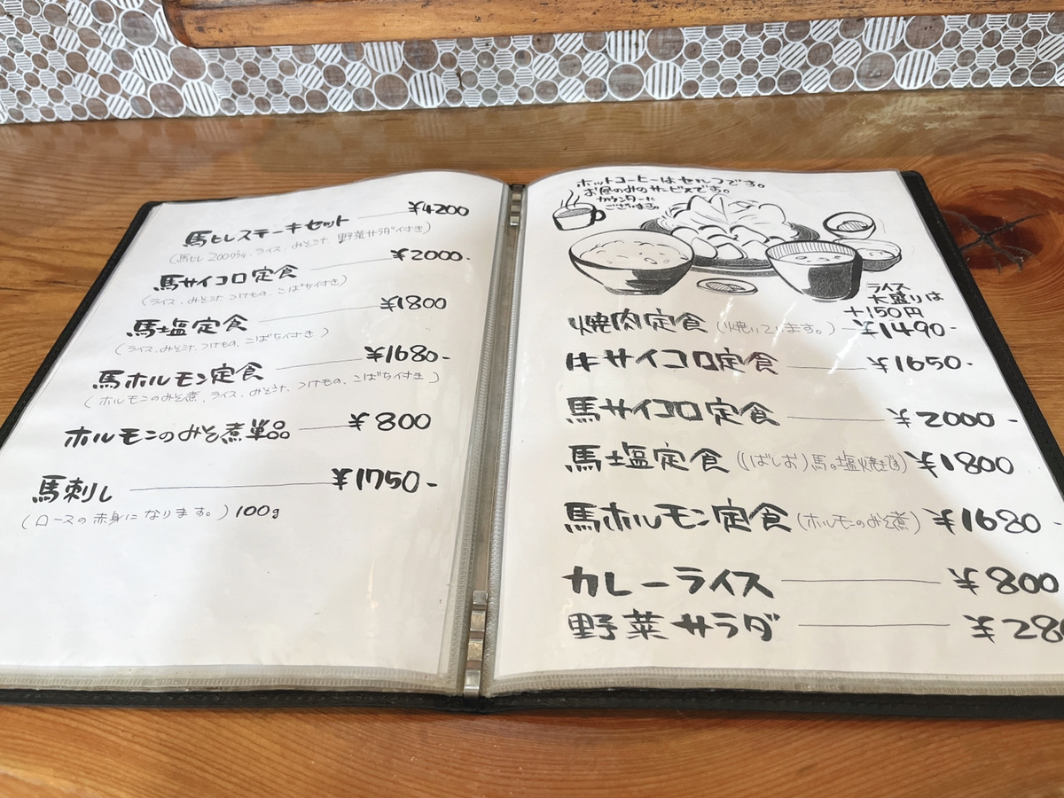 その他に馬肉のメニューも。馬のステーキって珍しいので食べてみたいかも。