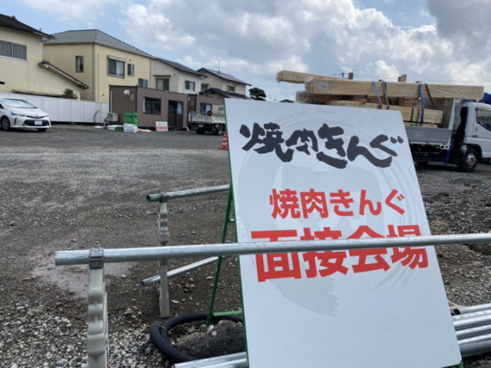 面接は奥のプレハブで行われている様子です。