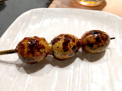 こちらはユニークな「殻ごと焼いたうずらの卵」だそうです。パリパリの卵の殻ごと食べます。これがまたクセになる美味さ!