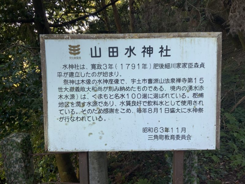 山田水神社は、肥後細川家の家臣森貞平が建立したのが始まりだそうです。