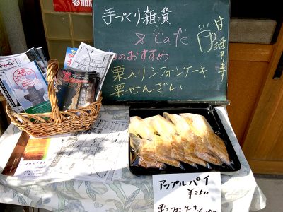 お茶菓子類も手作りがそろっています。「アップルパイ」や「栗シフォンケーキ」などが販売されていました。