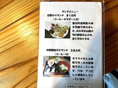 ランチメニューは、「日替わりランチ」と「お姫様団子汁ランチ」の2種類。