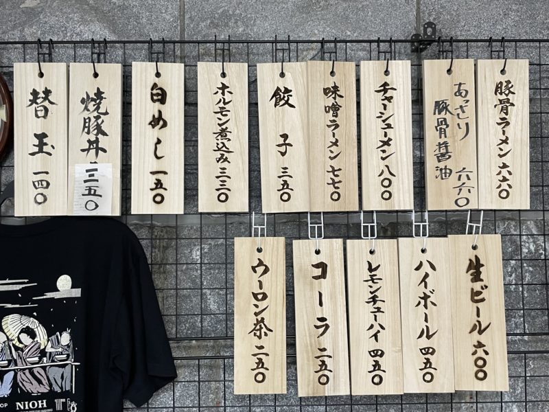 豚骨、醤油、味噌と揃ったラインナップ。今回は豚骨ラーメンと、醤油ラーメンを注文しました。
