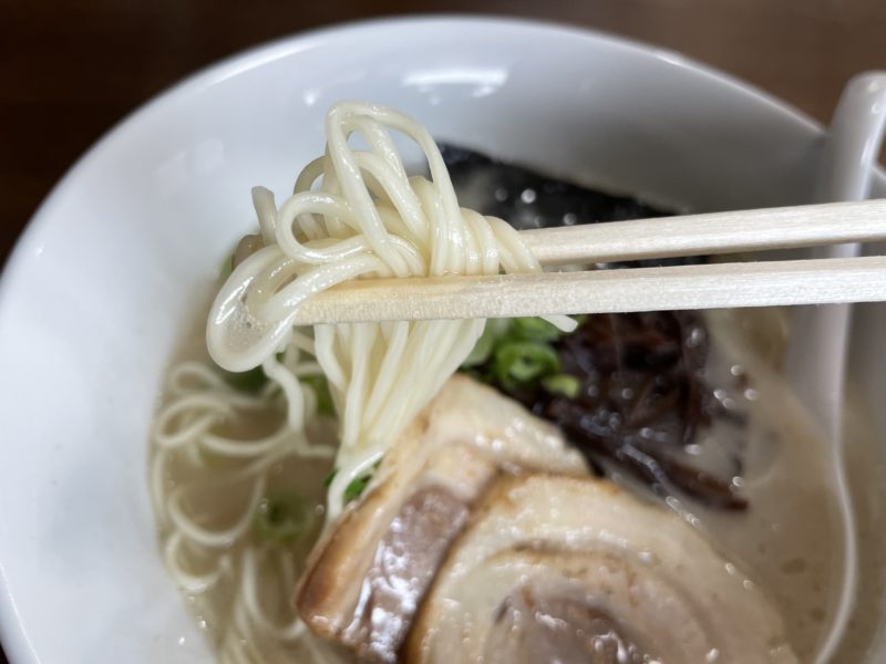 長浜ラーメンより太く、熊本ラーメンより細い麺。スルッとのどを通る感じです。
