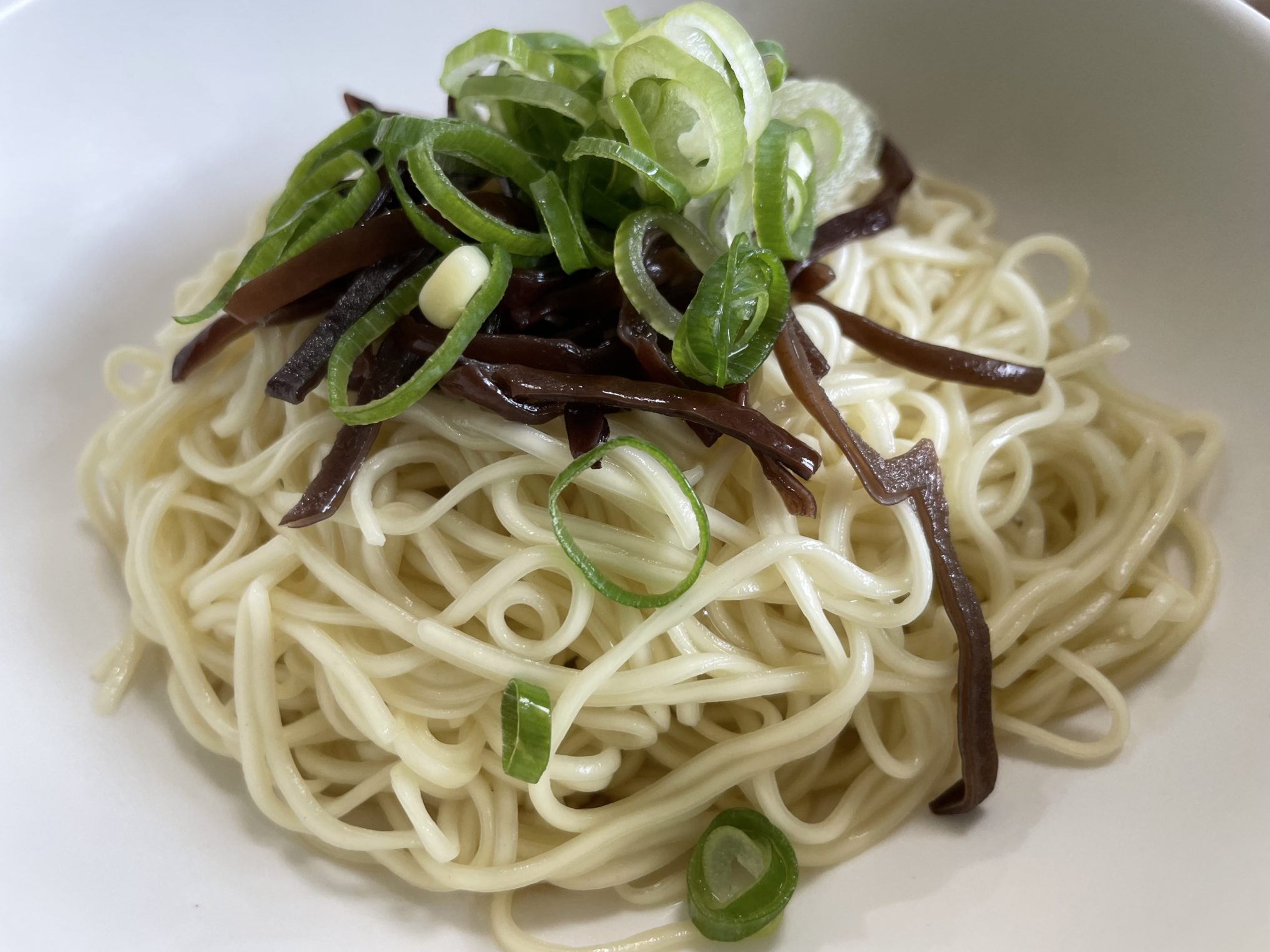 ネギ、チャーシュー、きくらげ、海苔が乗ってます。