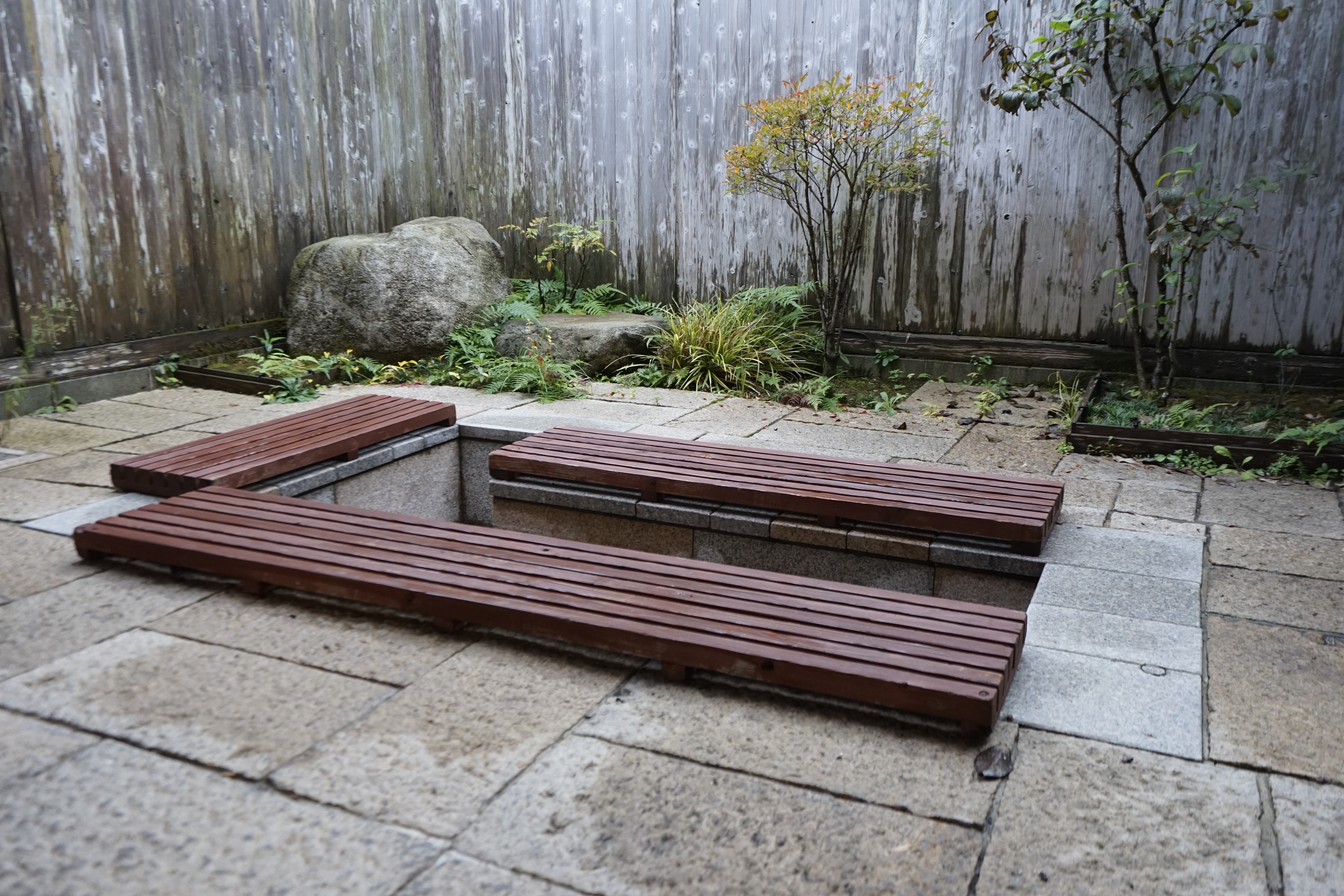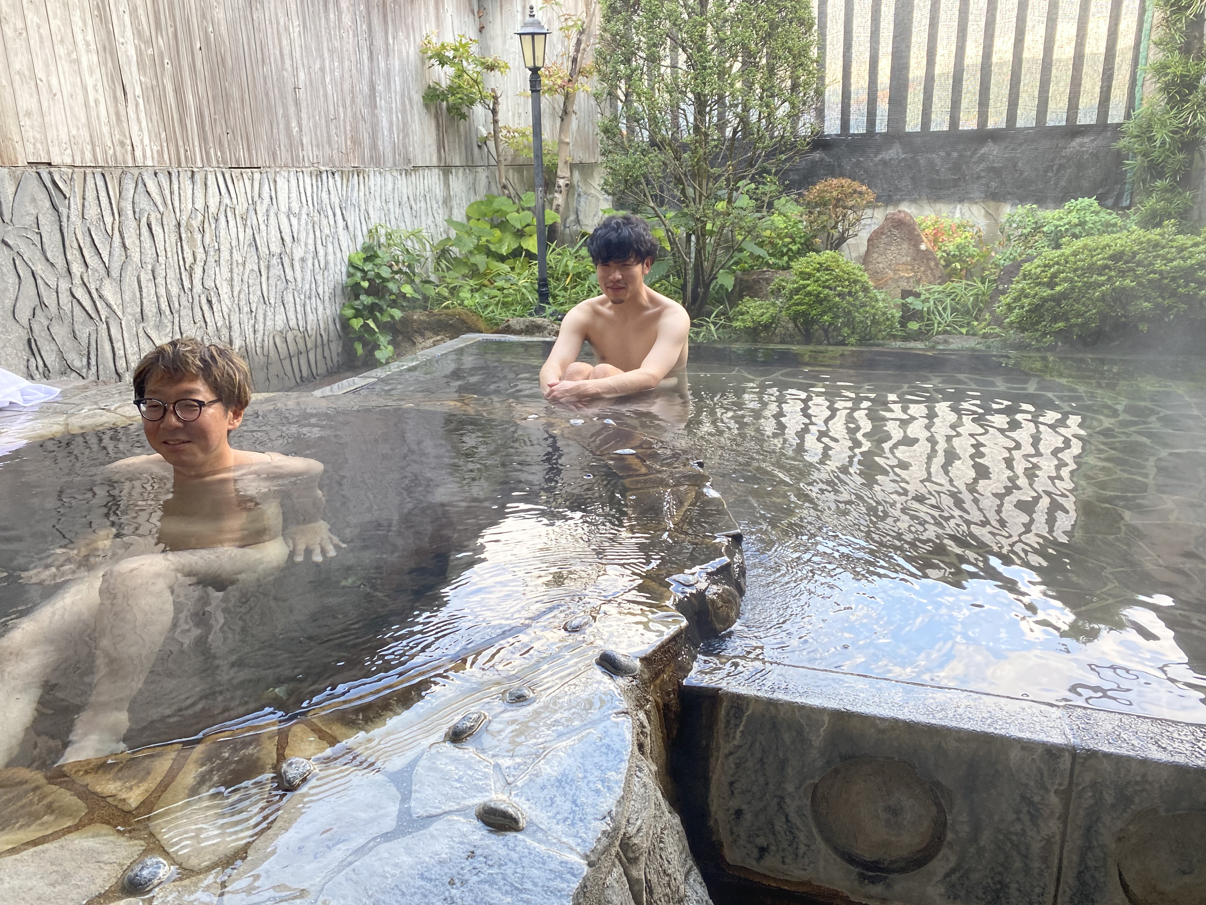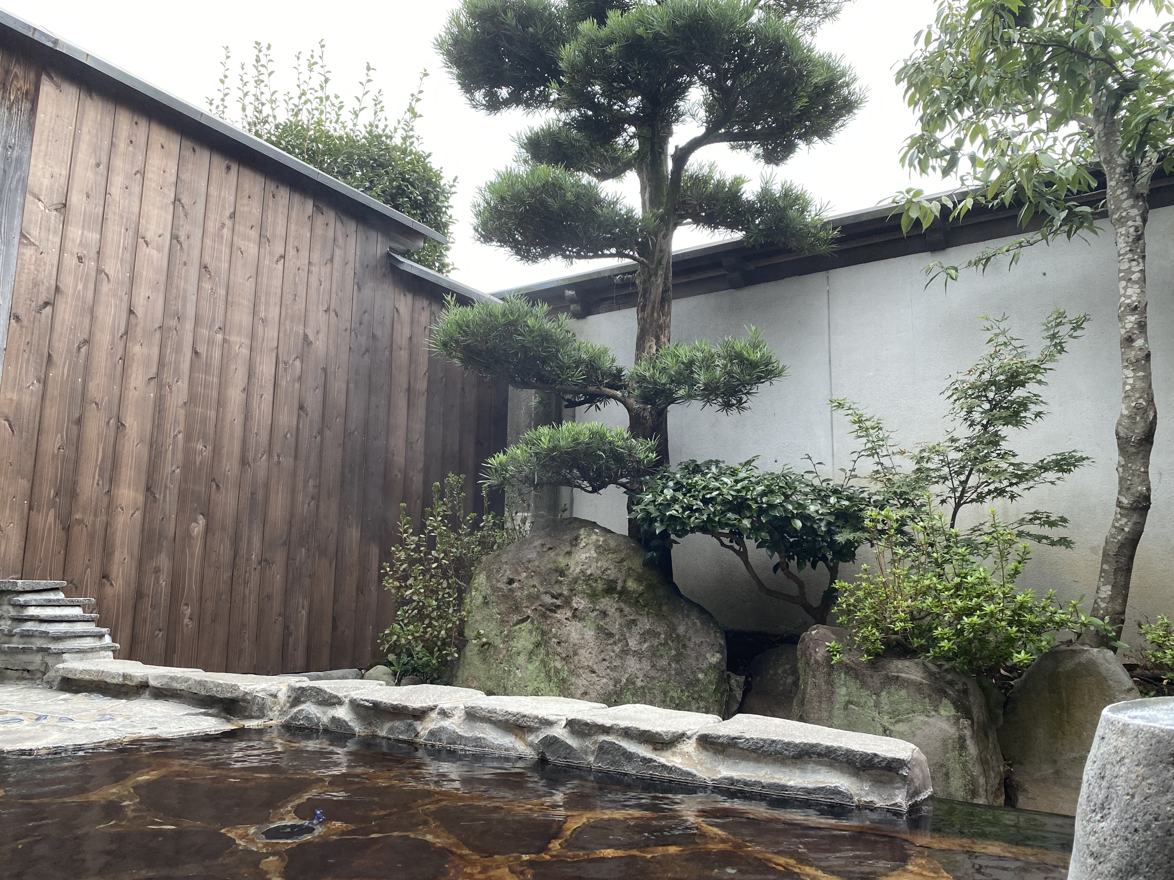 普通の露天風呂と寝湯や足湯になる浅い風呂もありました。露天にあるお庭も綺麗に手入れされており、一人でゆっくりデトックスに来られる方もいらっしゃるそうです。