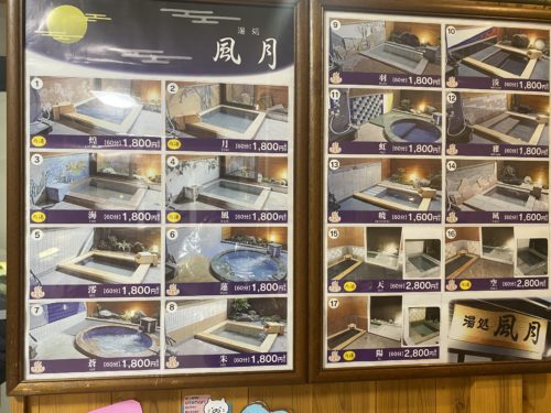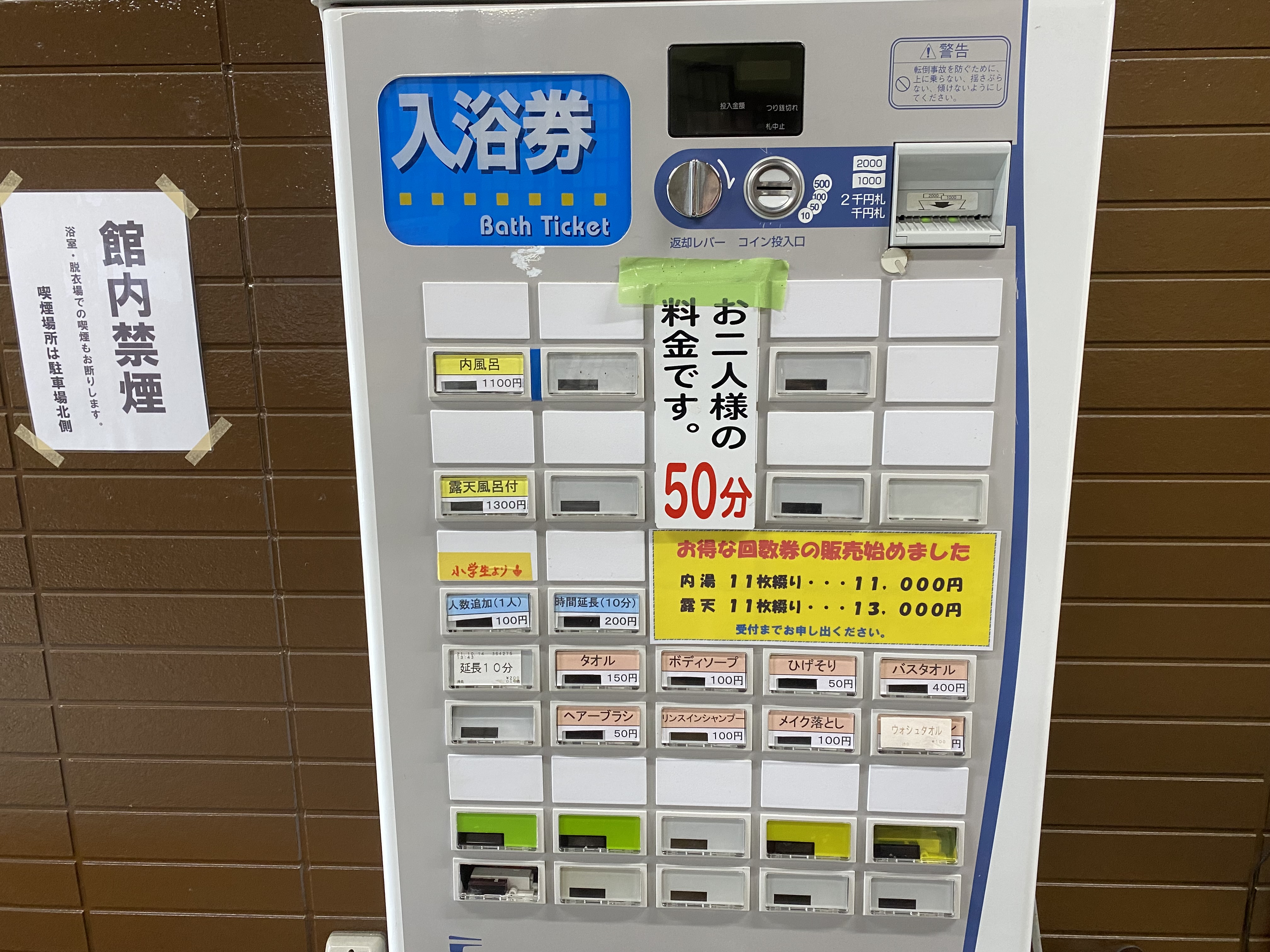 露天付きと露天なしで入浴料が違います。空いてる部屋を確認してチケットを買ってくださいね。