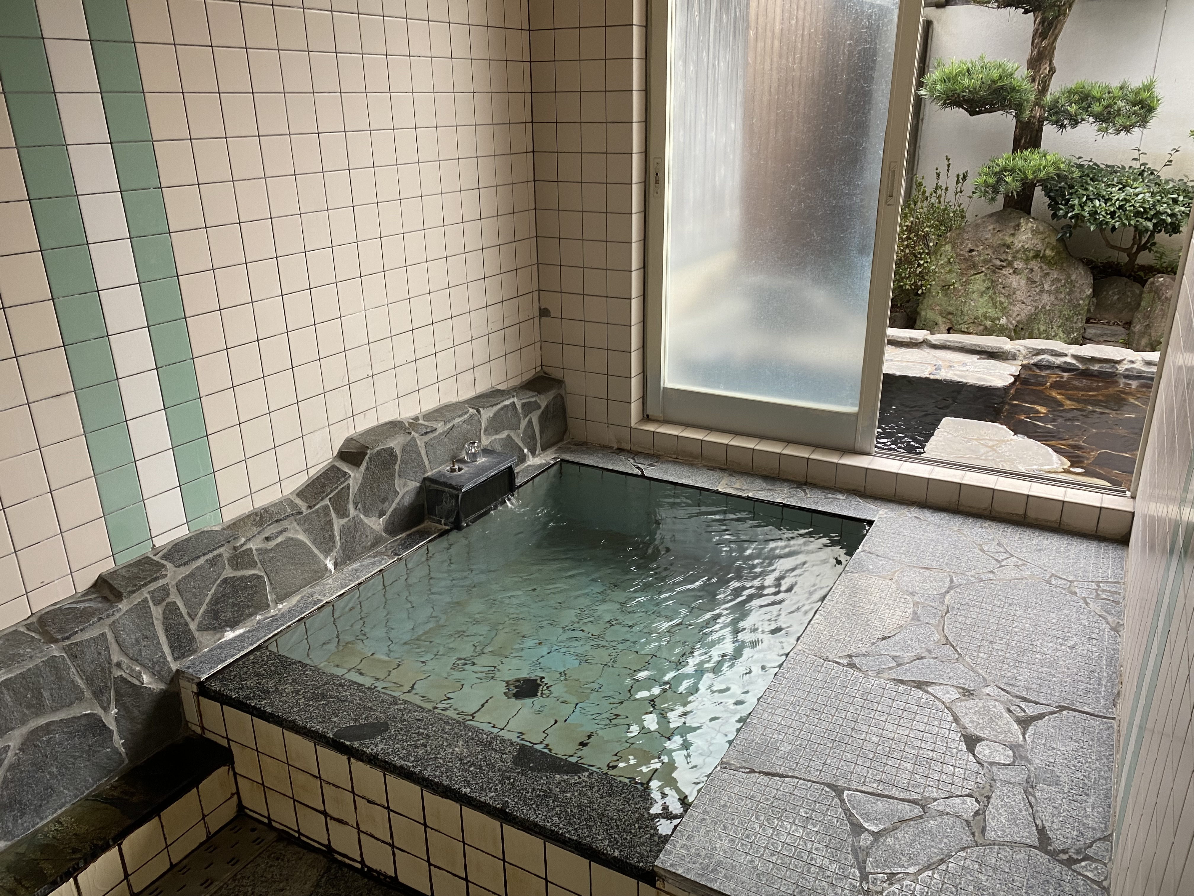 | 個人的感想 | お湯はサラサラのかけ流し。源泉そのままで熱めのお湯。かけ流しの温泉の音と手入れされた庭を見ながらゆっくり浸かると癒される。 |