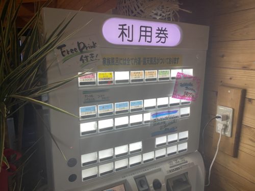 券売機でチケットを買って受付します。なんと!フリードリンク付きがうれしい!