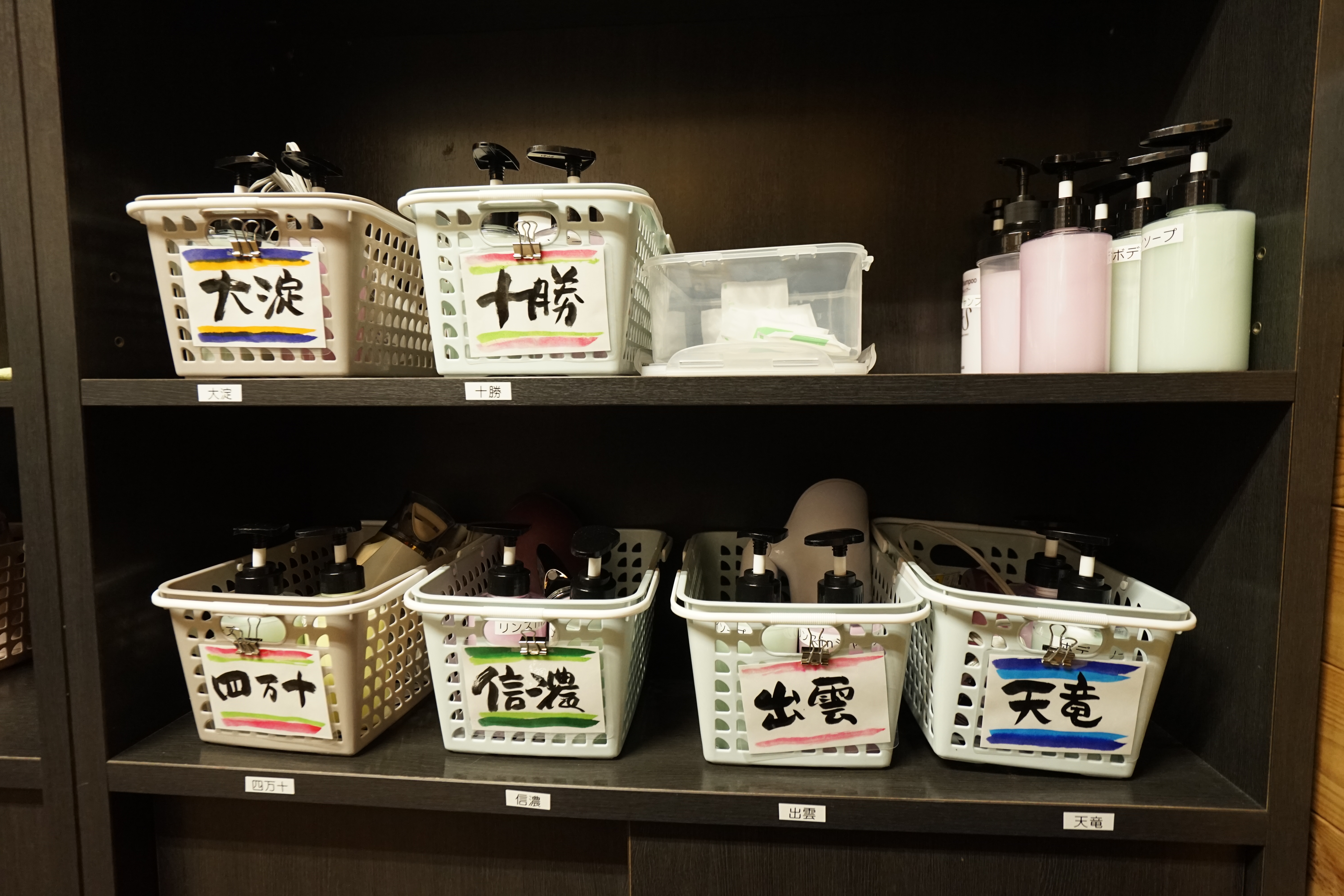 シャンプーやボディソープも無料で貸し出しがあり、タオルだけで入浴できます!