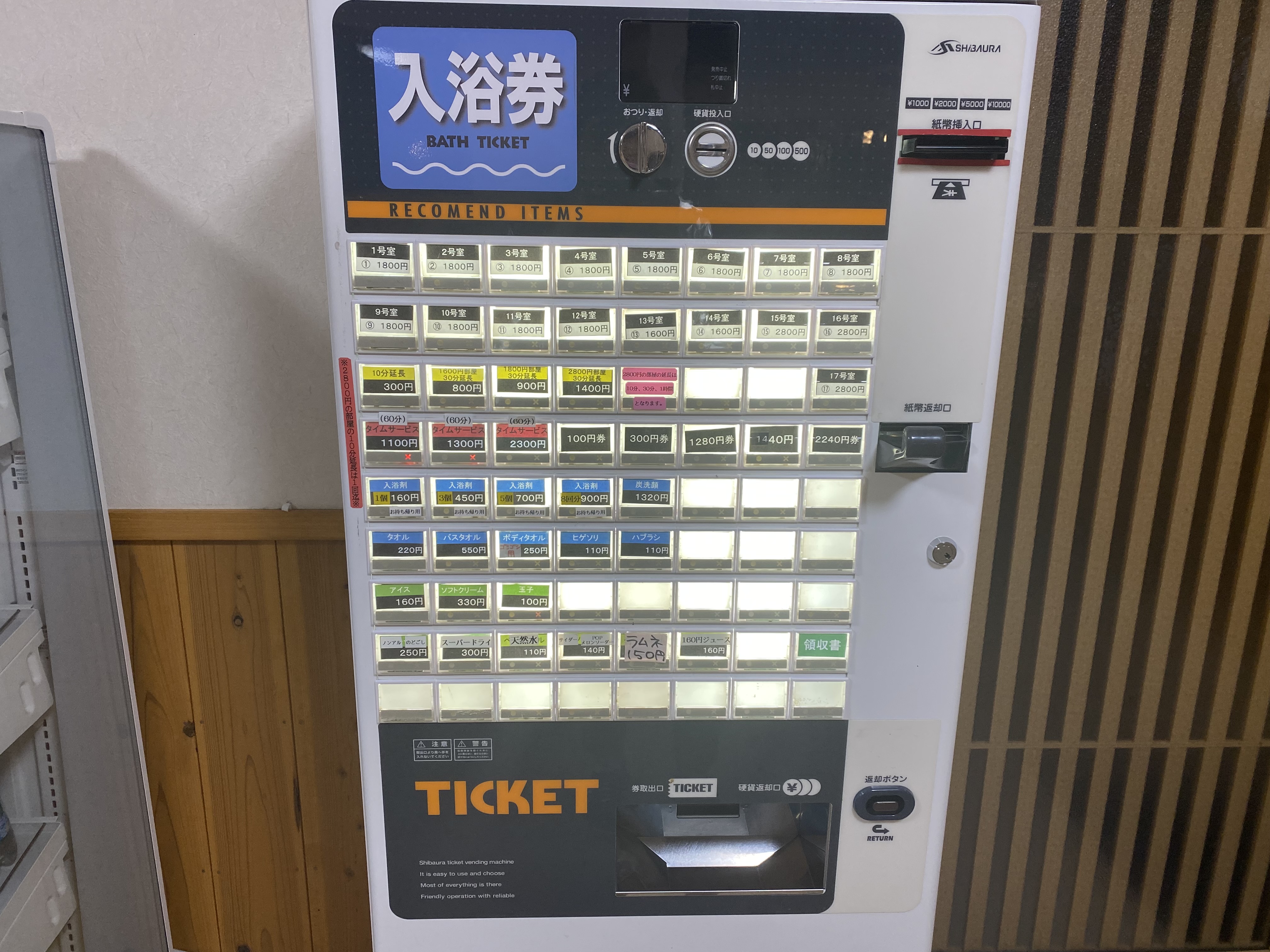 | 予約・支払い方法 | 電話予約OK。券売機でチケット購入し、カウンターでアメニティを受け取る |