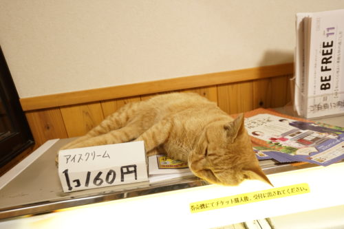 帰りにアイスでも食べようかと・・・ここにもネコ!もうね、温泉で癒され、ネコで癒され。