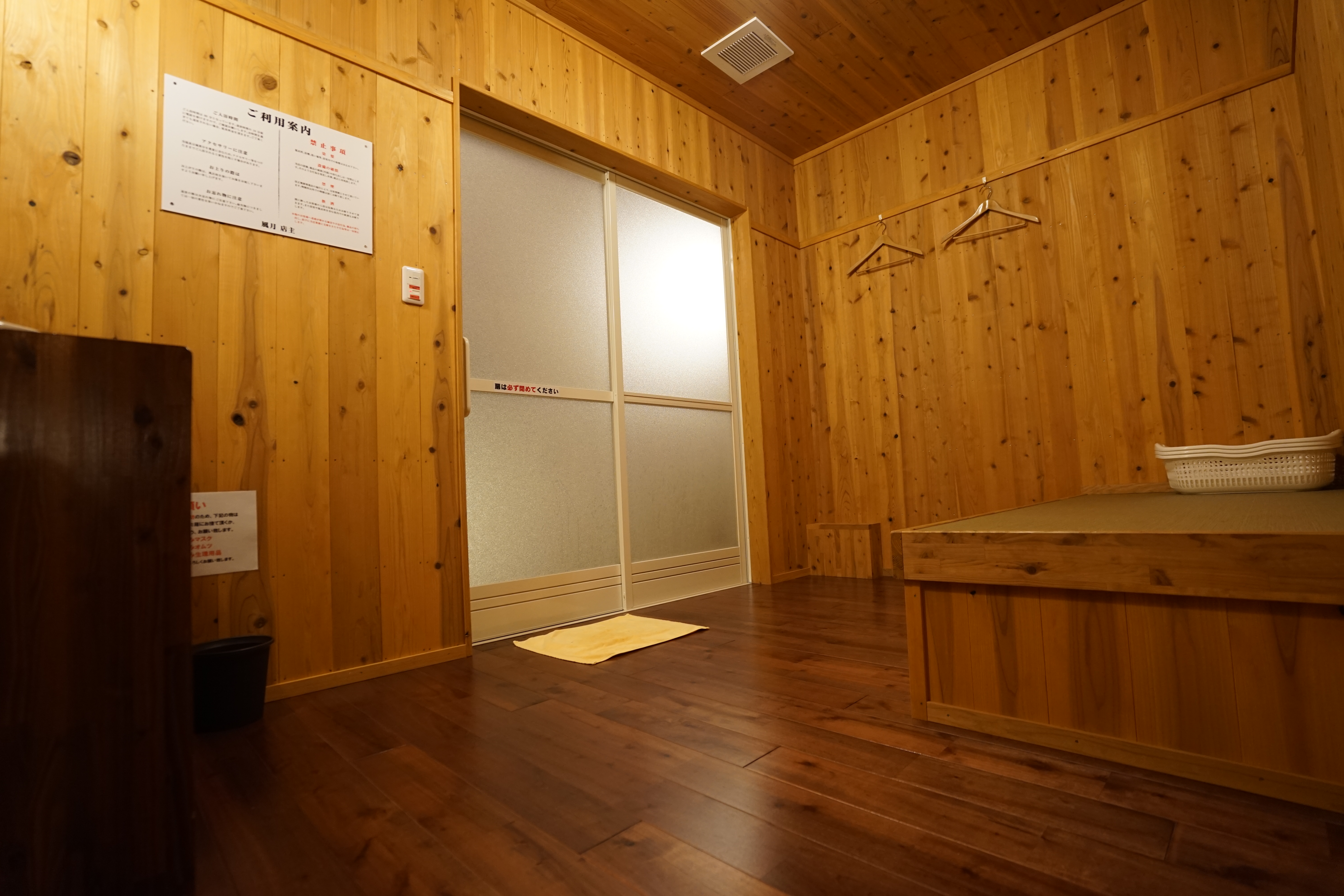 脱衣所に入ると、温泉とヒノキの香りに包まれます。