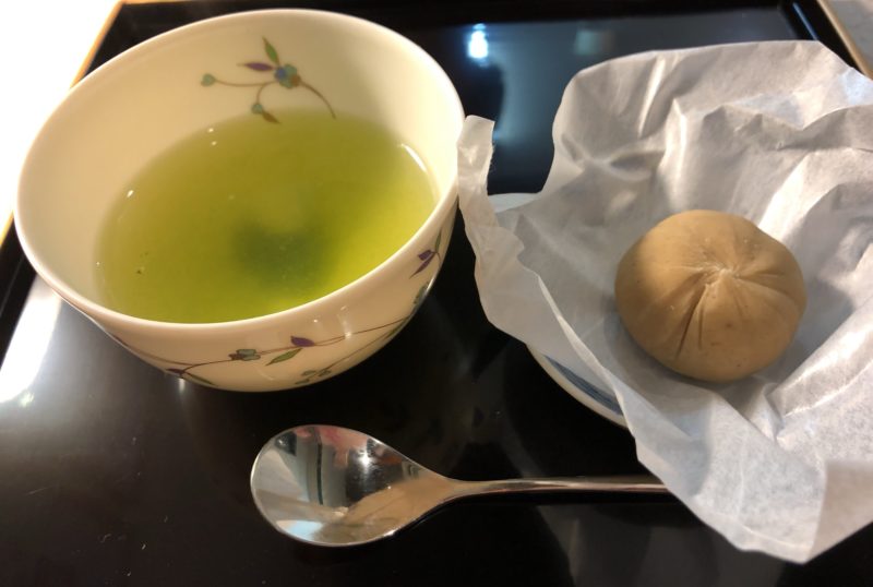 茶店「栗山」のメニューは、栗の和菓子「深山栗山」とお茶の「いっぷくセット」のみ!